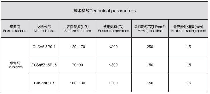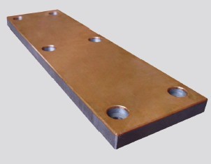 以低碳鋼為基體采用特殊工藝復合一層2mm 以上的軋制錫青銅板。由于軋制錫青銅板密度高、耐磨性好,極大的提高了產品使用壽命。此類產品按客戶來圖加工生產,因采用鋼銅復合工藝, 降低成本25% 以上。廣泛用于各類機器、機械設備滑動副。
