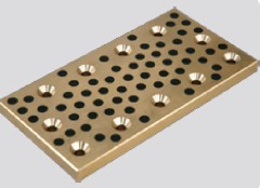 The copper-alloy inlaid self-lubricated sliding plate with solid lubrication is produced by inlaying solid lubricant on the copper alloy. The product is provided with the abrasion resistance and self lubrication capacity with solid lubricant. Therefore, lubricant for maintenance is basically unnecessary during the operation. It can provide copper alloy of different grades according to the working conditions.The copper alloy can be processed into various types as required.